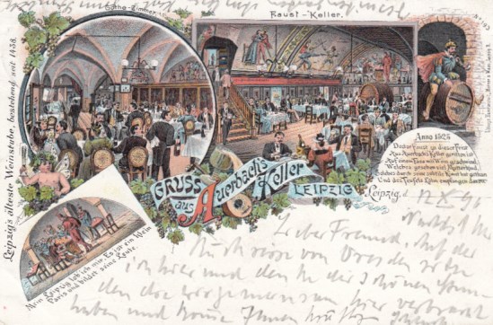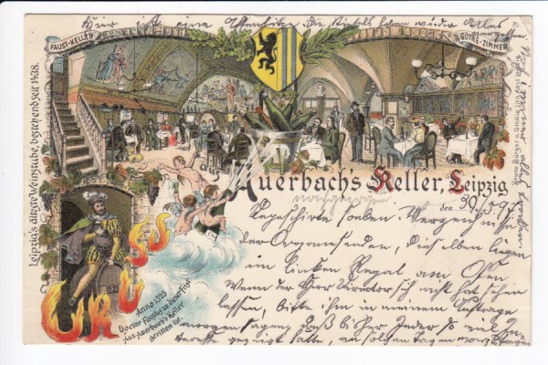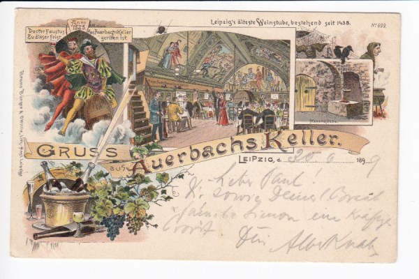 Leipzig Litho Ansichtskarte Bruno Bürger Künstlerkarte Auerbach Keller 1899