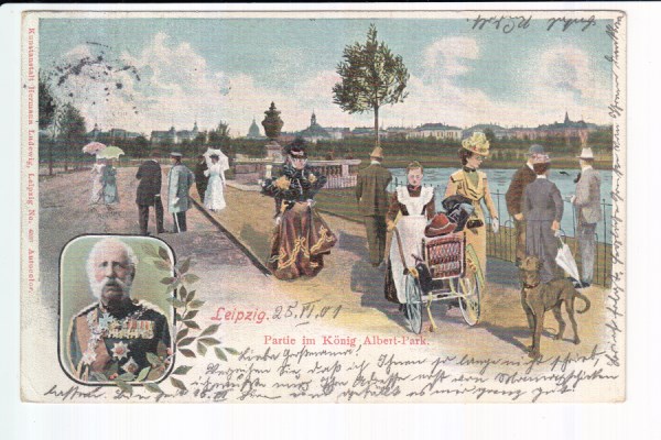 Leipzig König Albert-Park Adel Monarchie Litho Kinderwagen Hunde 1901