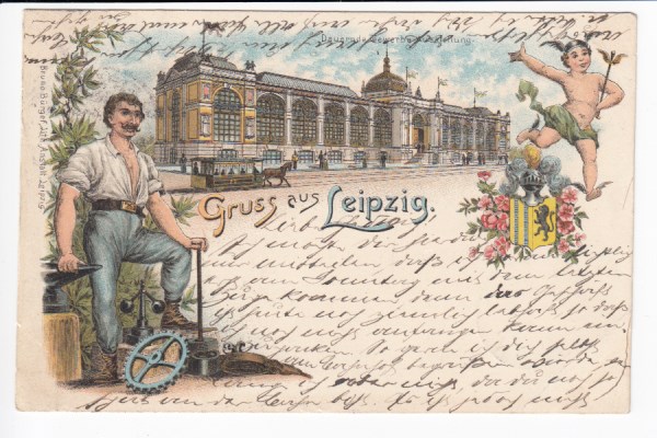 Leipzig Litho Ansichtskarte Bruno Bürger Künstlerkarte Gewerbe-Ausstellung 1896
