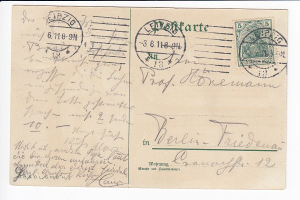 Leipzig Königsplatz Strassenbahn 1918 Feldpoststempel Connewitz