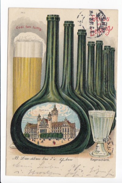 Leipzig Litho Ansichtskarte Bier Regenschärm 1911