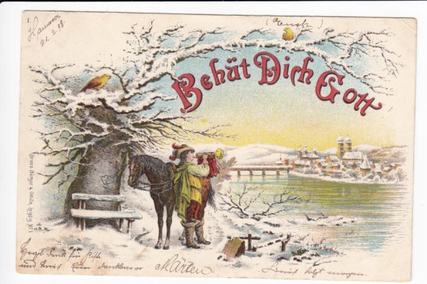 Leipzig Litho Ansichtskarte Bruno Bürger Künstlerkarte Behüt Dich Gott Religion 1898