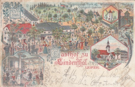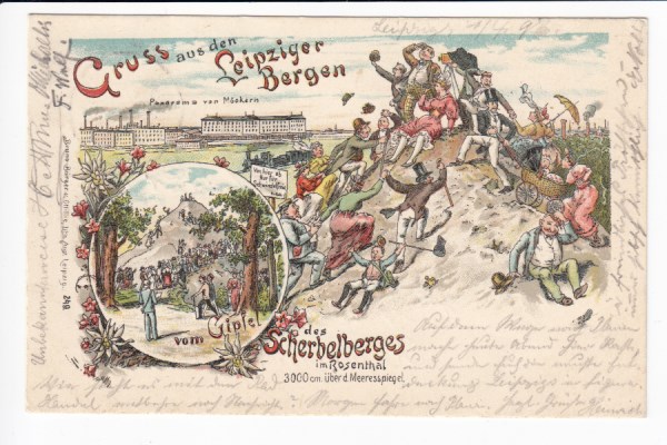 Leipzig Litho Ansichtskarte Bruno Bürger Künstlerkarte Scherbelberg 1896