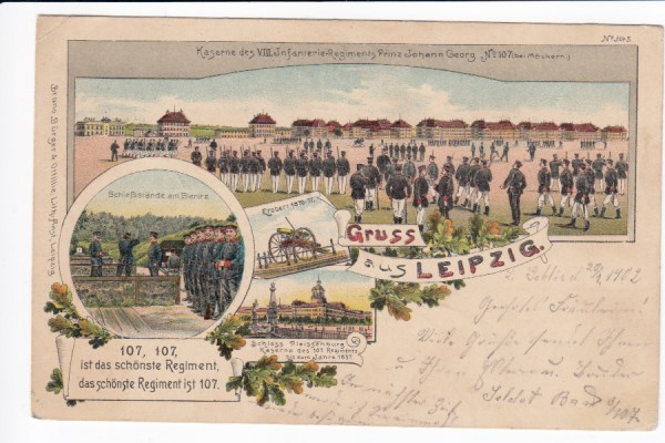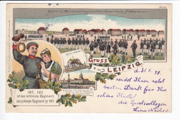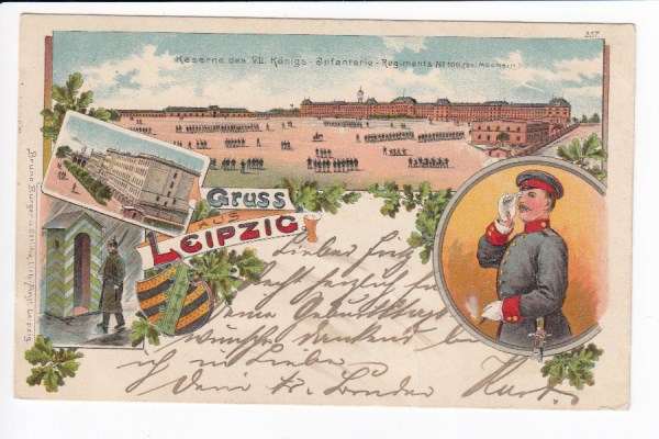 Leipzig Litho Ansichtskarte Bruno Bürger Künstlerkarte Kaserne Militär Soldaten 1898