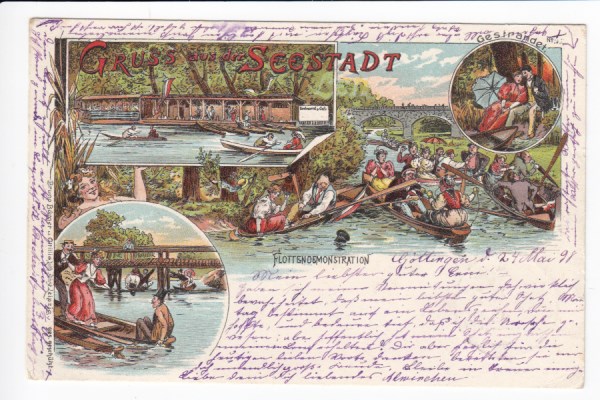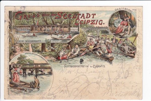 Leipzig Litho Ansichtskarte Bruno Bürger Künstlerkarte Seestadt Connewitz 1898