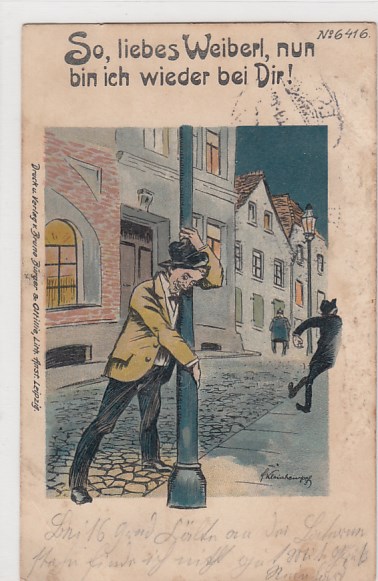 Leipzig Litho Ansichtskarte Bruno Bürger Künstlerkarte Ulk Scherz Humor
