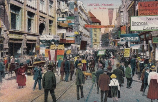 Leipzig Messe vor hunder Jahren AK ca von 1910 Grimmaische Straße