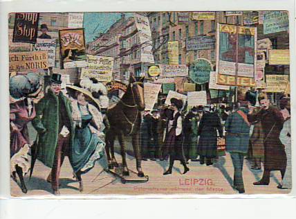 Leipzig Petersstrasse Messe Pferde ca 1915