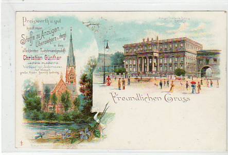 Leipzig Plagwitz Werbung Reklame Stoffe Anzüge Christian Günther Litho