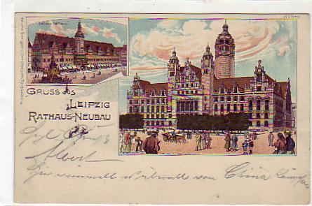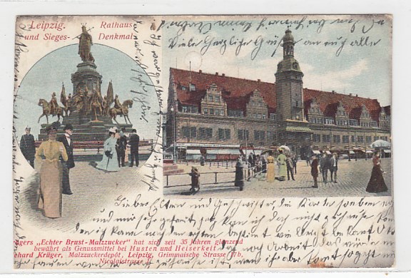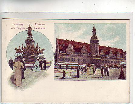 Leipzig Rathaus und Siegesdenkmal ca 1900