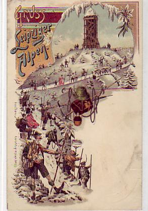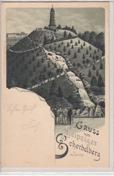 Leipzig Scherbelberg Aussichtsturm Litho Ansichtskarte von 1901
