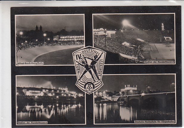 Leipzig Sport Stadion Turnfest Klappkarte mit Briefmarken 1956