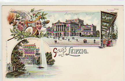 Leipzig Theater Litho Bruno Bürger ca 1900