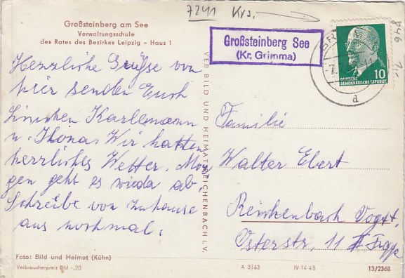 Gemeinde Parthenstein OT Großsteinberg am See 1963