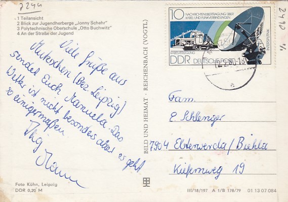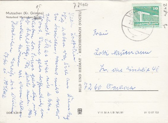 Mügeln Anlaß AK 198gelaufen mit der Post aber Marke abgelöst sonst guter Zustand Sonderstempel