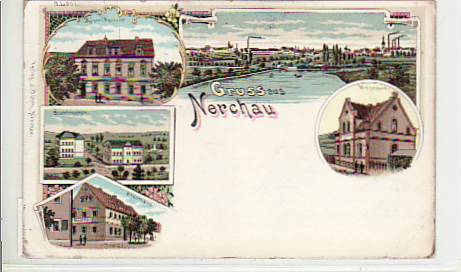 Nerchau bei Grimma Litho mit Postamt und Schule 1898