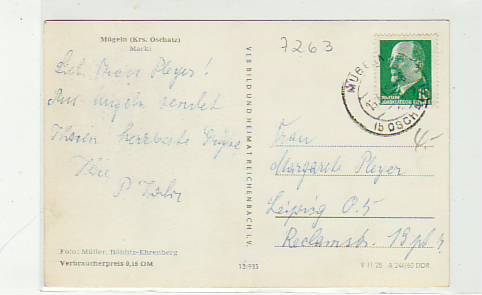 Mügeln in Sachsen Pfarrhaus Schloßstraße Landpoststempel Baderitz 1940