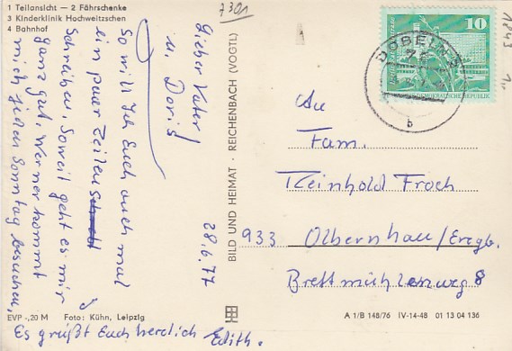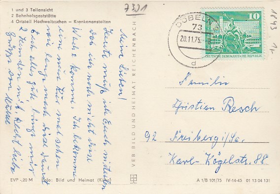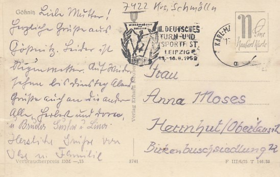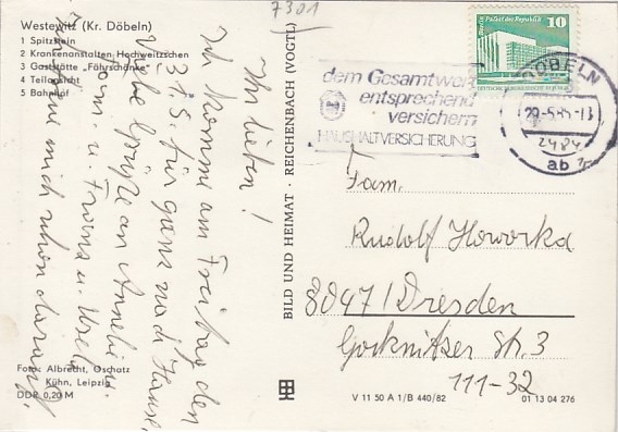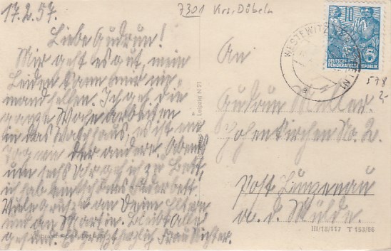 Gemeinde Großweitzschen OT Westewitz Hochweitzschen Landpoststempel Technitz Döbeln 1953