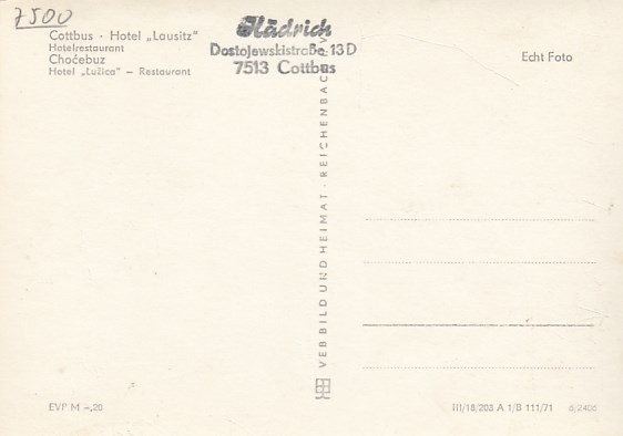 Cottbus Hotel Lausitz 1971