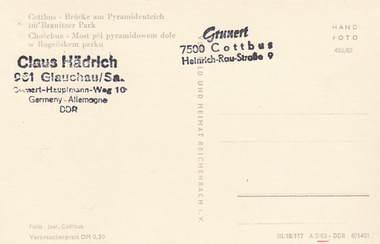 Cottbus Brücke im Branitzer Park 1963