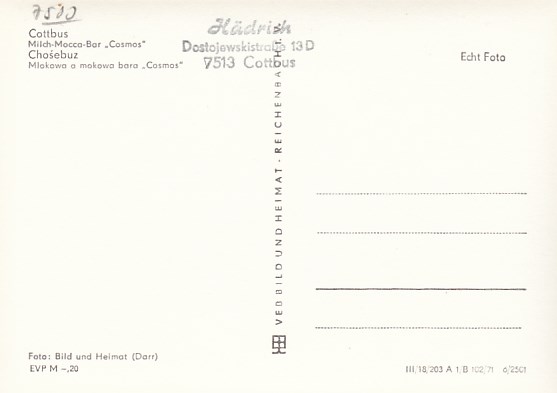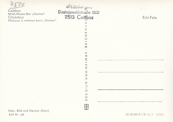 Cottbus Milchbar Mokkabar Kosmos 1973