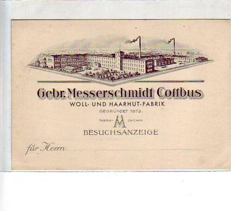 Cottbus Werbekarte Gebr.Messerschmidt Fabrik ca 1900