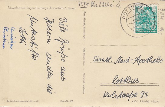 1015 [7551o273] |  | Jessern im Spreewald Jugendherberge 1960 | 4.00EUR 3.00EUR | In den Warenkorb |