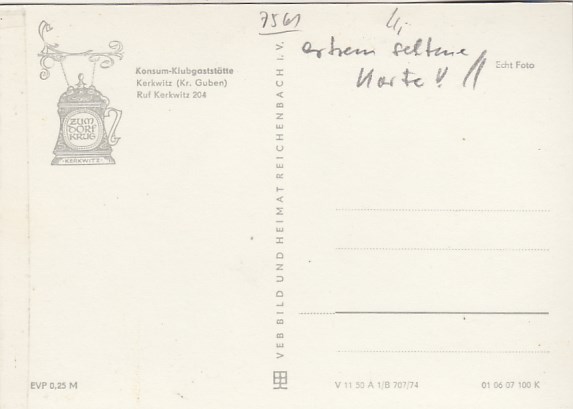 1042 [7551o384] |  | Kerkwitz Kreis Guben Konsum Gaststätte Klubgaststätte 1974 | 3.00EUR | In den Warenkorb |