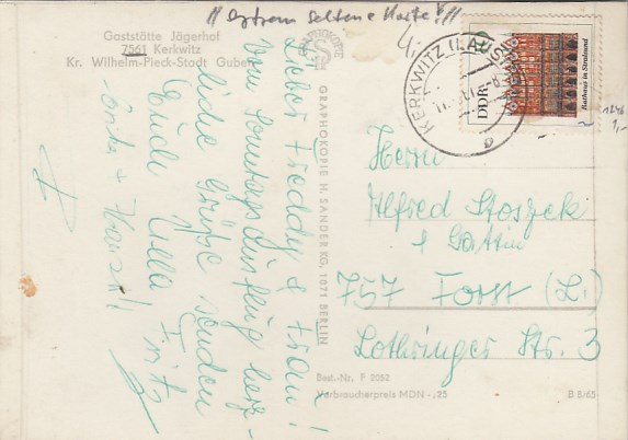 1037 [7561o9] |  | Kerkwitz Gaststätte Jägerhof Spreewald 1965 | 4.00EUR | In den Warenkorb |