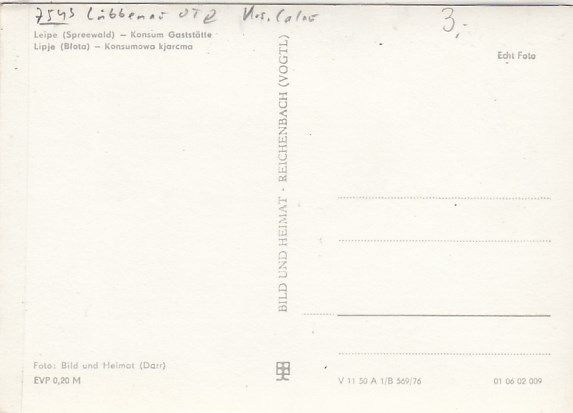 Leipe im Spreewald Konsum-Gaststätte 1961