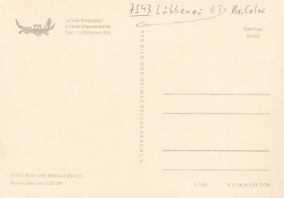 Lübbenau im Spreewald OT Lehde Cafe Venedig 1964