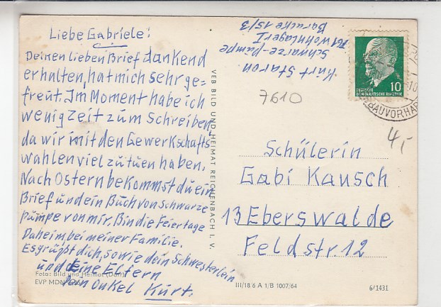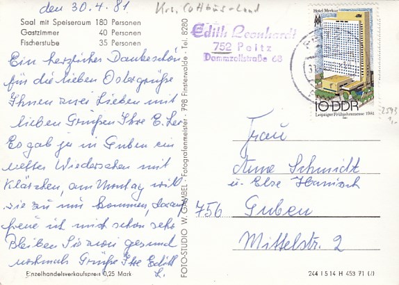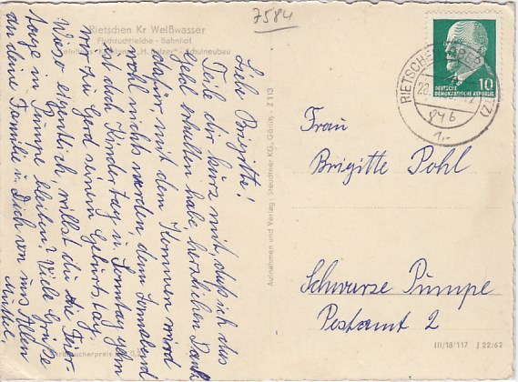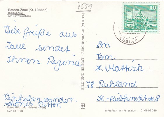 QSL Karte aus Guben , Politik Wilhelm Pieck 1976
