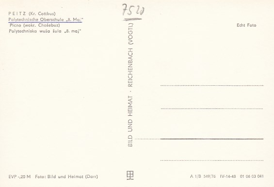 Peitz Niederlausitz Oberschule 8.Mai 1976