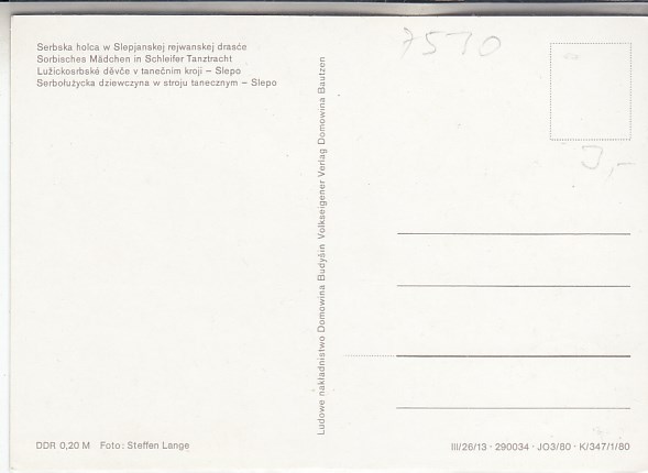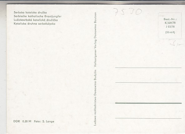 Sorbische Trachten Spreewald Brautjungfer Heinersbrück, Most 1979