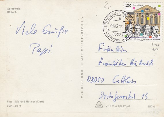 PLZ 159 u.029-03 Cottbus Guben Lauchhamer Spreewald Hoyerswerda