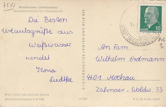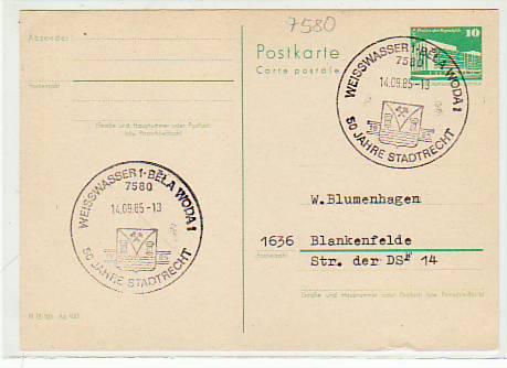 Weisswasser Weißwasser Oberlausitz Postkarte mit Sonderstempel 1985