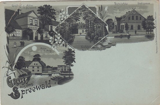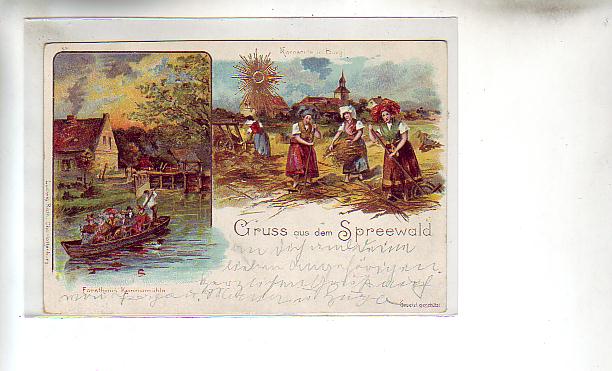 Burg im Spreewald Litho Ansichtskarte ca 1900