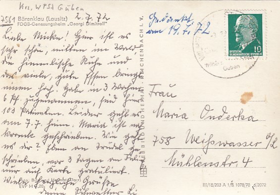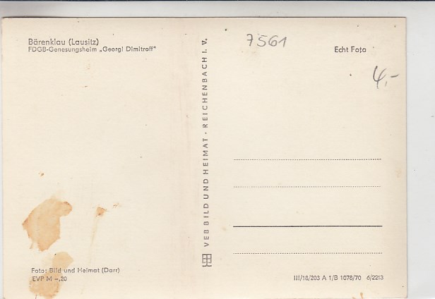 Bärenklau Lausitz Genesungsheim Georgi Dimitroff 1972