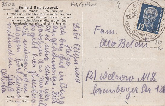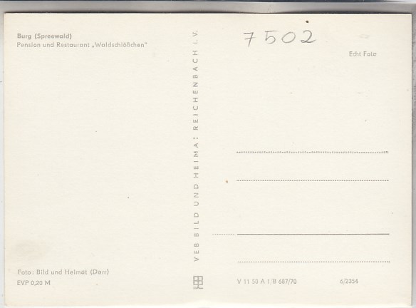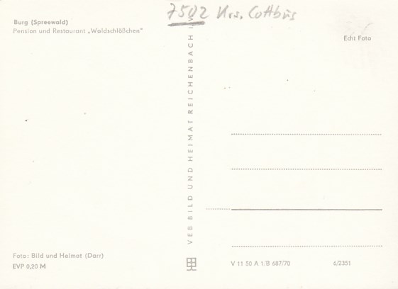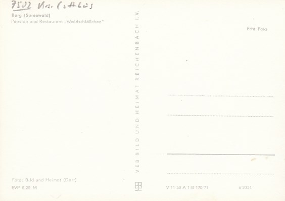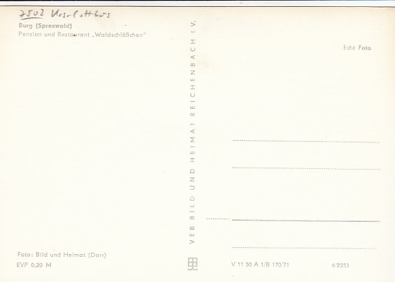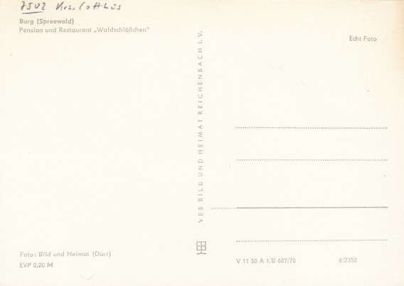 Burg im Spreewald Pension und Restaurant Waldschlößchen 1970