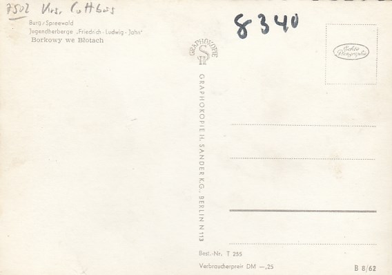 Burg im Spreewald Jugendherberge Friedrich Ludwig Jahn 1962