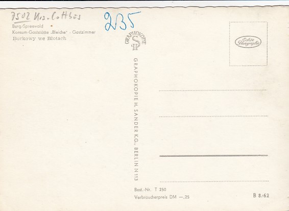Burg im Spreewald Konsum Gaststätte Bleiche 1962