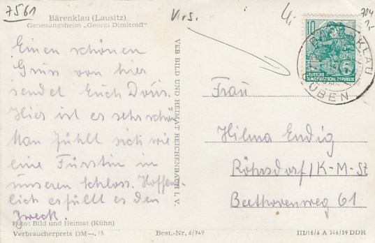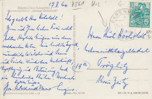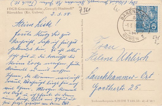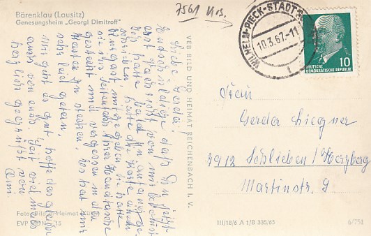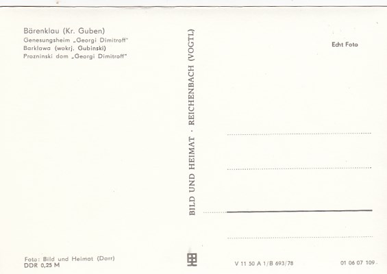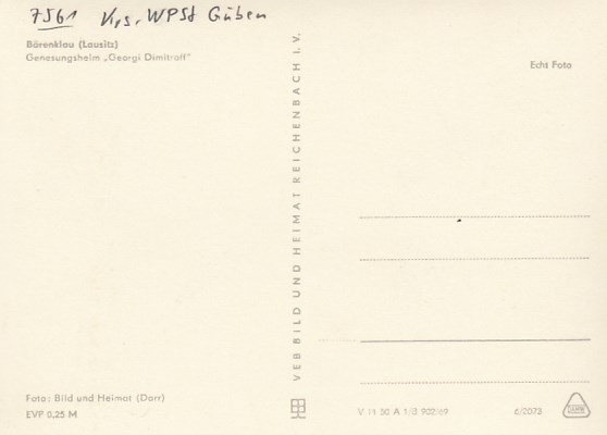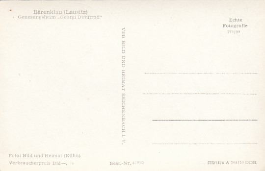 Bärenklau Lausitz Genesungsheim Georgi Dimitroff 1973