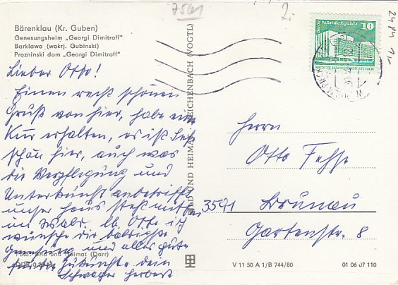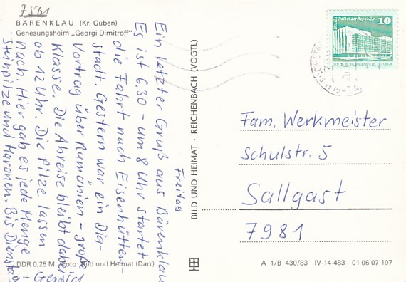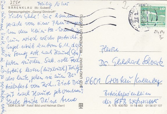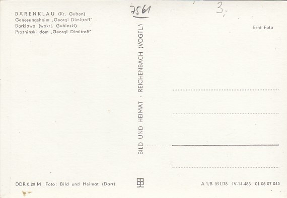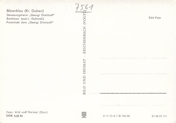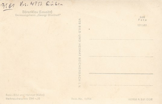 Bärenklau Lausitz Genesungsheim Georgi Dimitroff 1983
