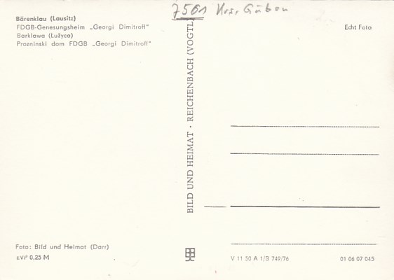 Bärenklau Lausitz Genesungsheim Georgi Dimitroff 1976