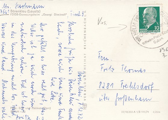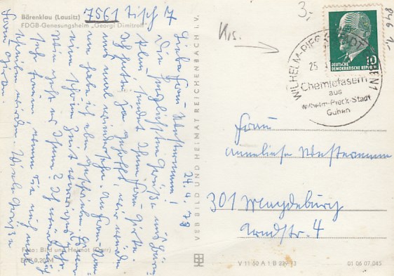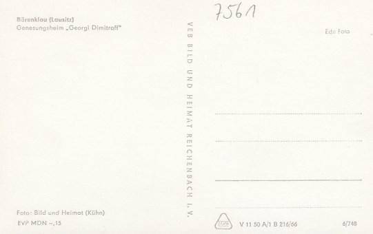 Bärenklau Lausitz Genesungsheim Georgi Dimitroff 1971