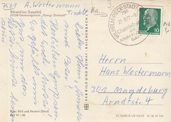 Bärenklau Lausitz Genesungsheim Georgi Dimitroff 1977