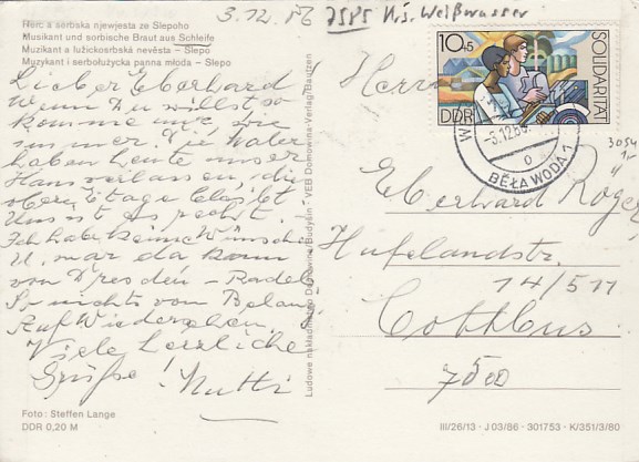 Calau Briefe Belege Postkutsche mit Sonderstempel 1982