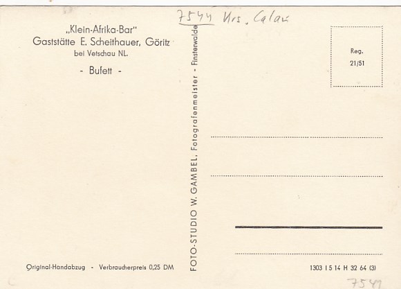 Göritz bei Vetschau Niederlausitz Gaststätte Klein-Afrika-Bar 1964