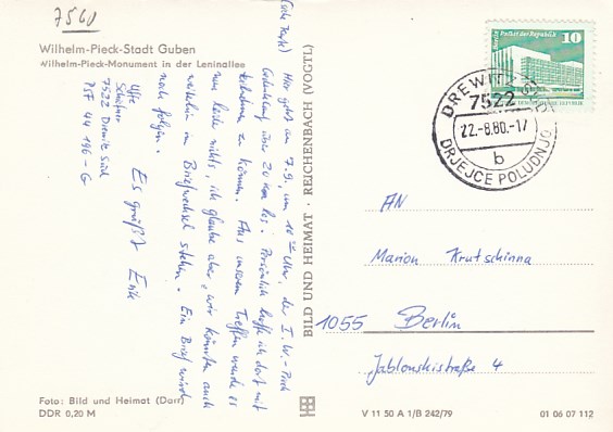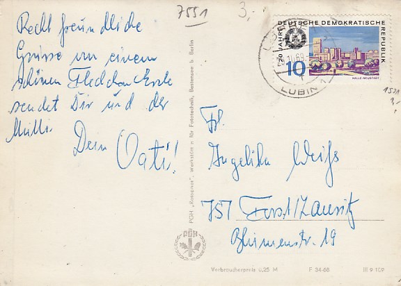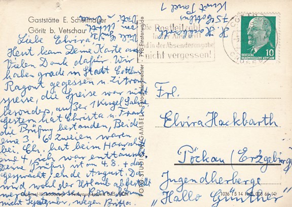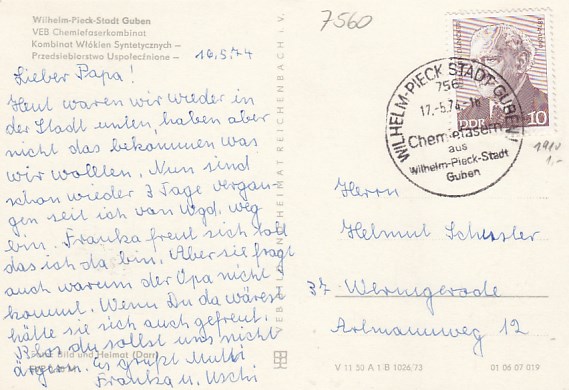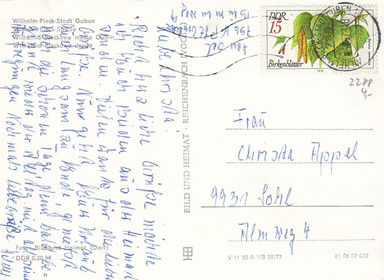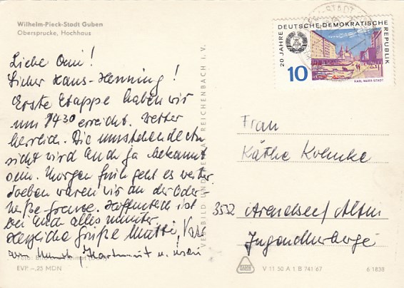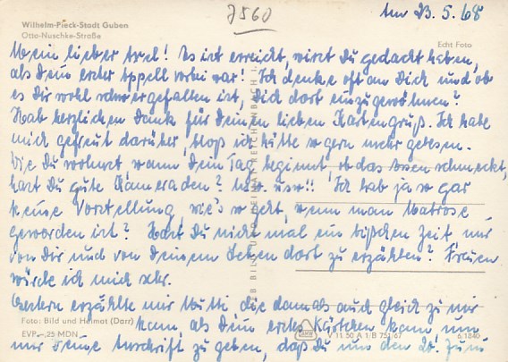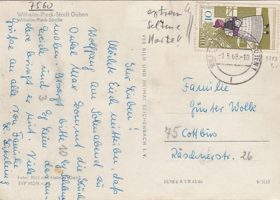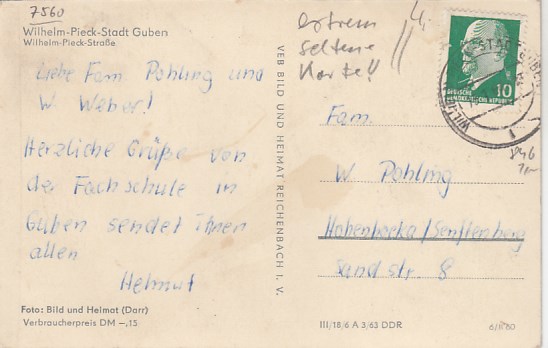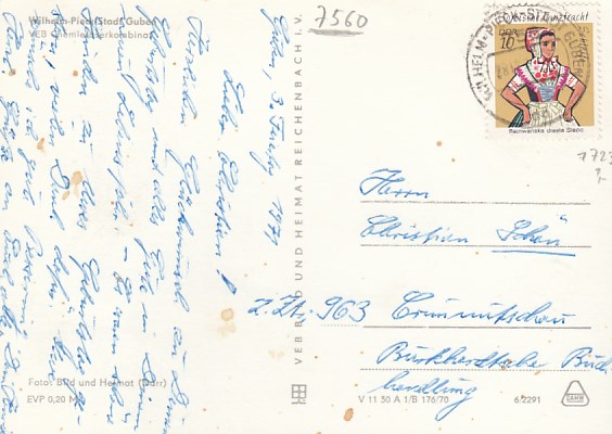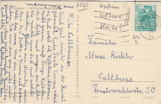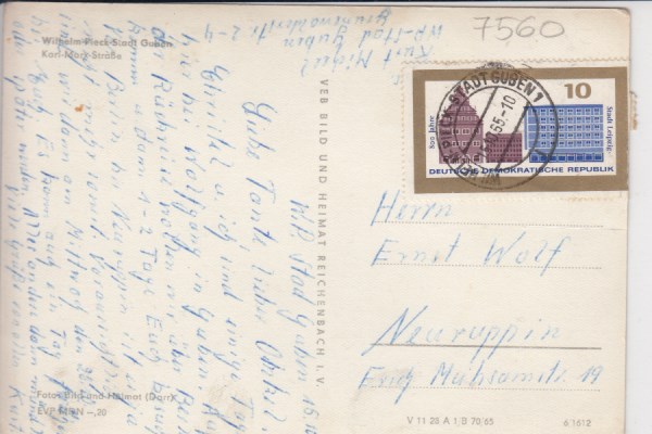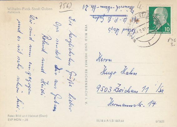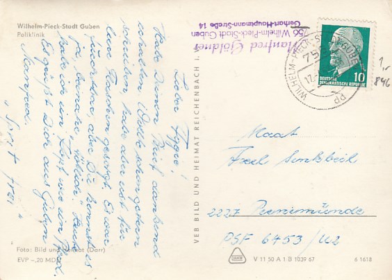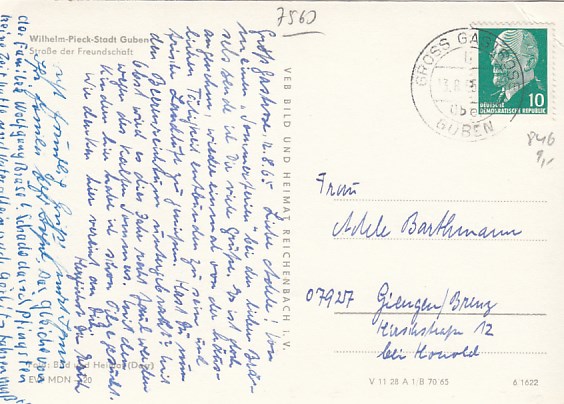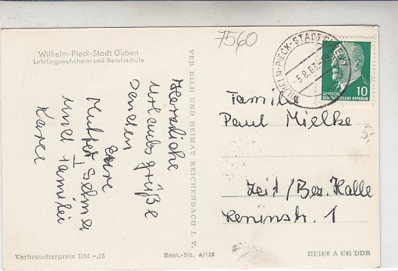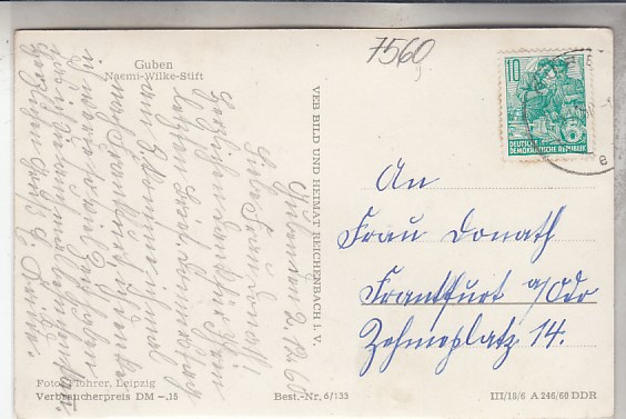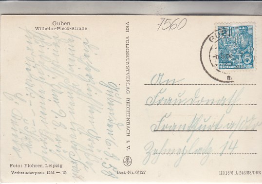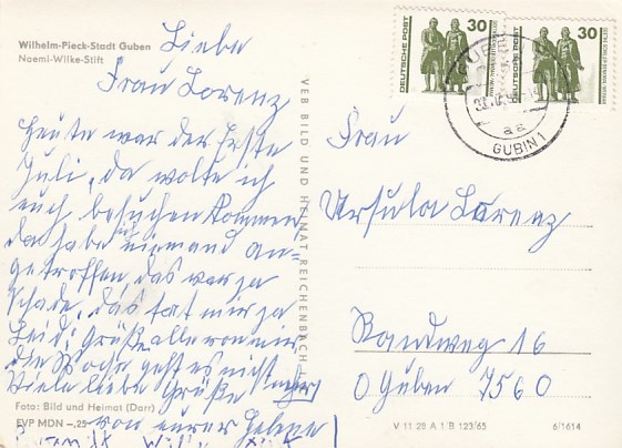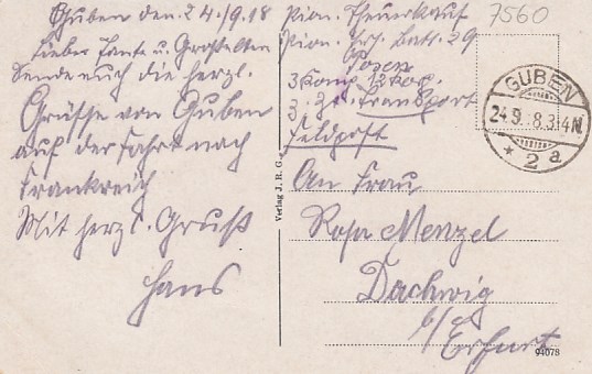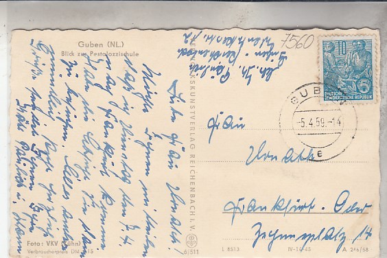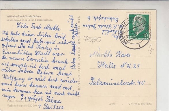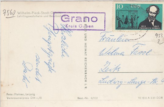 Guben Lehrlingswohnheim Landpoststempel Grano
