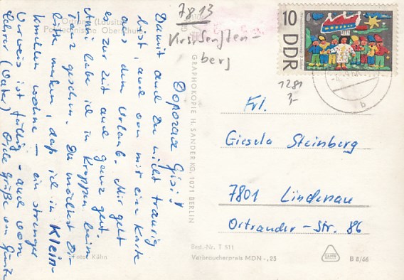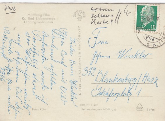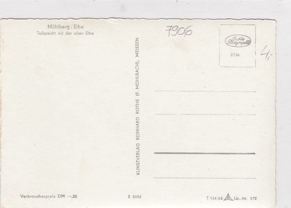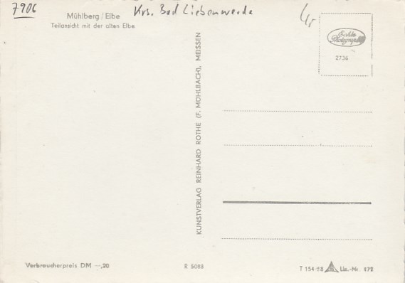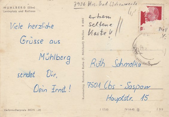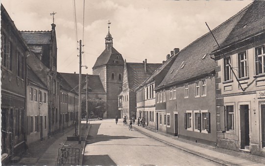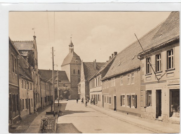Luckau Niederlausitz Stadtgraben am Roten Turm Landpoststempel Kreblitz 1955
